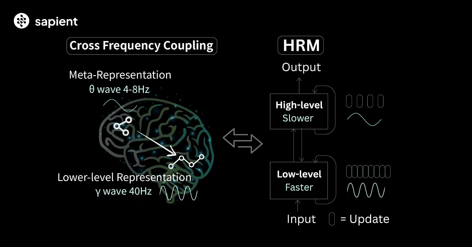 Current LLMs depend heavily on Chain-of-Thought prompting, an approach that often suffers from brittle task decomposition, immense training data demands and high latency. Inspired by the hierarchical and multi-timescale processing in the human brain, HRM overcomes these constraints by embracing three fundamental principles observed in cortical computation: hierarchical processing, temporal separation, and recurrent connectivity. Composed of a high-level module performing slow, abstract planning and a low-level module executing rapid, detailed computations, HRM is capable of alternating dynamically between automatic thinking (“System 1”) and deliberate reasoning (“System 2”) in a single forward pass.