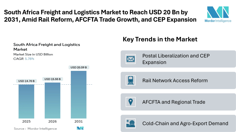 South Africa Freight and Logistics Market to Reach USD 20.59 Billion by 2031, Amid Rail Reform, AFCFTA Trade Growth, and CEP Expansion
